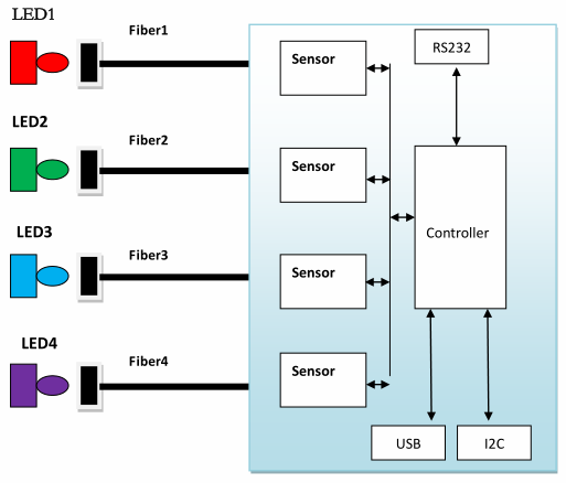 高精度LED测试仪支持 USB, I2C及RS232接口。
