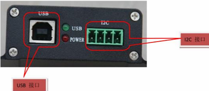 7.3  高精度LED测试仪左侧面为 USB及I2C接口,详细如下图所示: