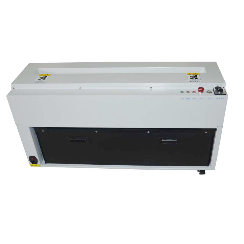 SMT料带切割设备,用于贴片机料带回收处;通常没有自带回收功能的贴片机,废弃料带都是用垃圾桶回收,人员手动用剪刀剪断;SMT料带剪带机则完全代替人员手动剪料带,并实现了料带、薄膜都能剪切的功能;将回收到SMT料带切割机内部的废弃料带剪切,剪切的料带、薄膜掉落在SMT料带切割机自带的回收抽屉中,方便人员最后集中处理;不仅给员工一个良好的工作环境。